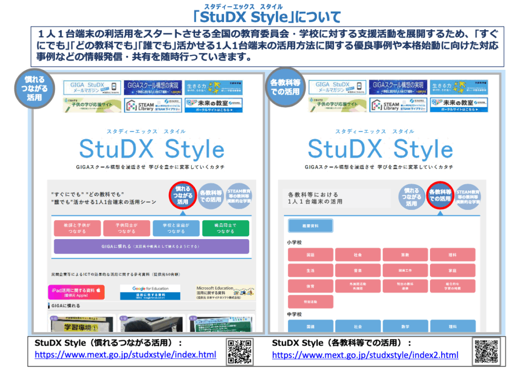 各学校で校務の見直しを行う際の参考として、文部科学省では、ポータルサイトStuDX Styleにて様々な事例を紹介しています。